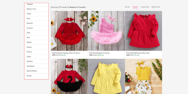 These are just an extended version of the above-mentioned search functionality and are a great tool to help customers narrow their search results to find items that are relevant to them. Adding category filter attributes to your eCommerce website will help shoppers with unclear preferences to buy the right item needed for them. The attributes, however, may change according to the type of products you deal with.