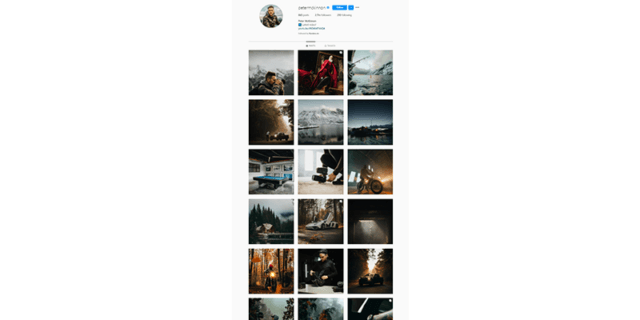 Here’s how ‘Peter McKinnon’ maintains his Instagram feed. See how dark tones in every photo contribute to this page’s overall consistency.