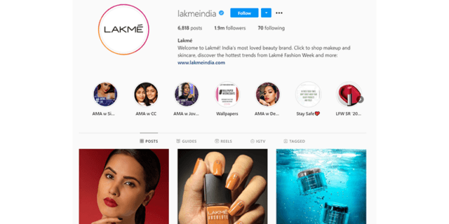 For example, see ‘Lakme India’s’ Instagram username – it is their company name itself. You can also notice that they have kept their logo as their profile picture, so as to make it easily recognizable by their audience.