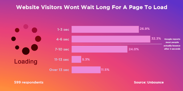 The time your website takes to load affects your bounce rate and ranking in search engines, irrespective of the language or geographical location. Not only on desktops, but your website should also load faster on phones. A page speed report by ‘Unbounce‘ stated that 32.3% out of 599 respondents waited for 4-6 seconds before abandoning the site, and 26.9% waited for 1-3 seconds.