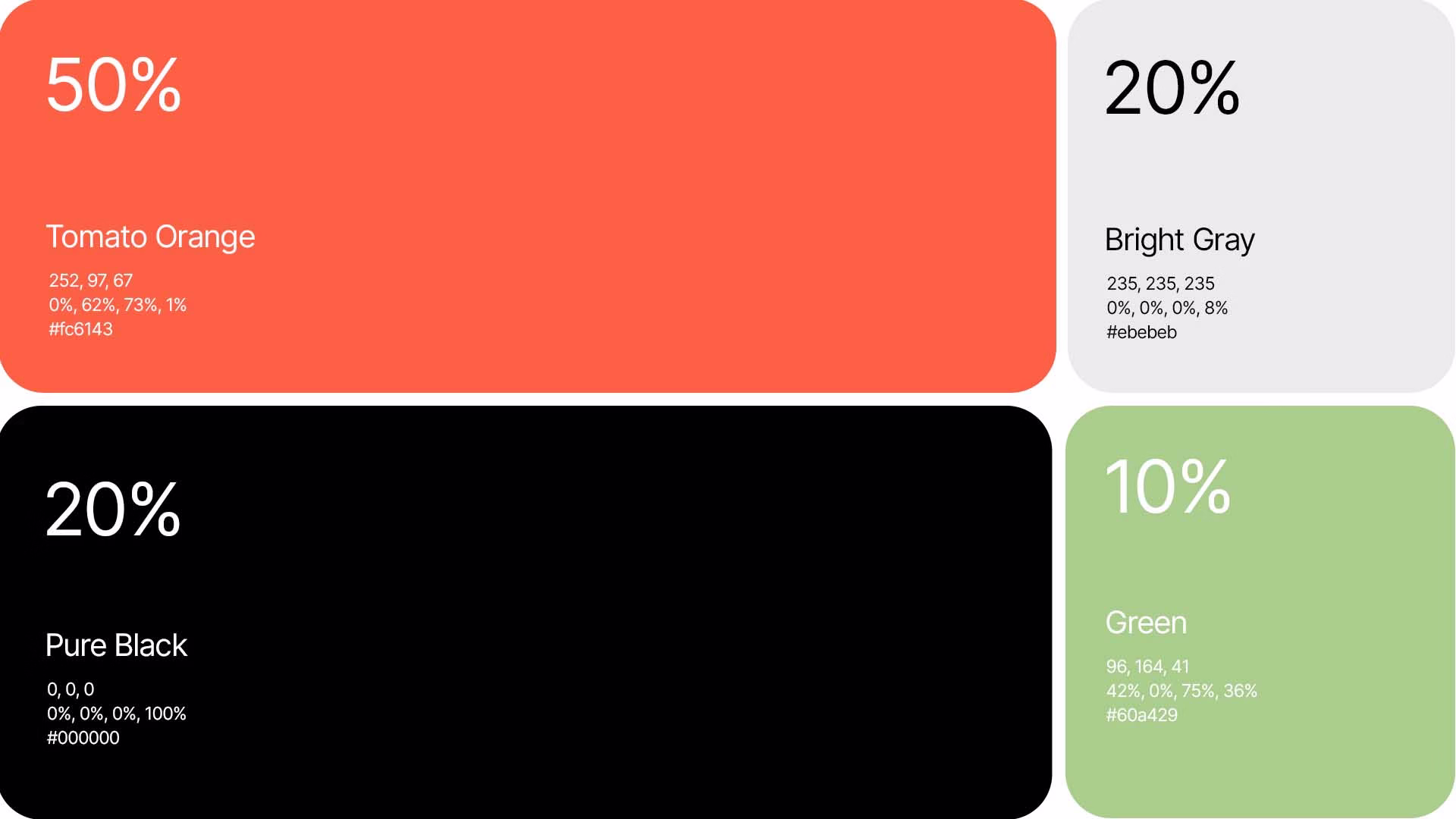The bold combination of Tomato Orange, Pure Black, Green, and Bright Grey brings a sense of energy, freshness, and contrast—just like a well-plated meal. The colors work together to create a lively atmosphere that makes ordering food feel like an experience, not just a transaction.