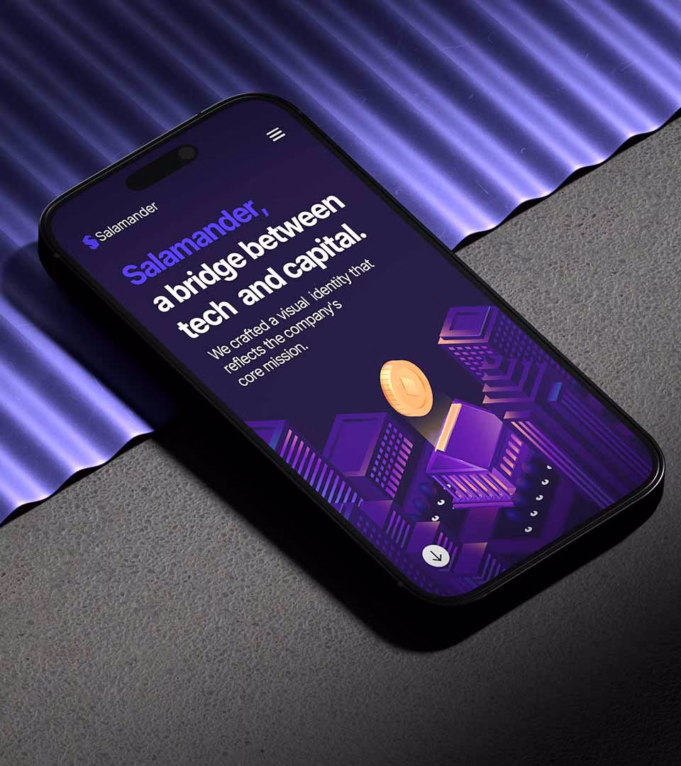 Salamander, a bridge between tech and capital. We crafted a visual identity that reflects the company's core mission.